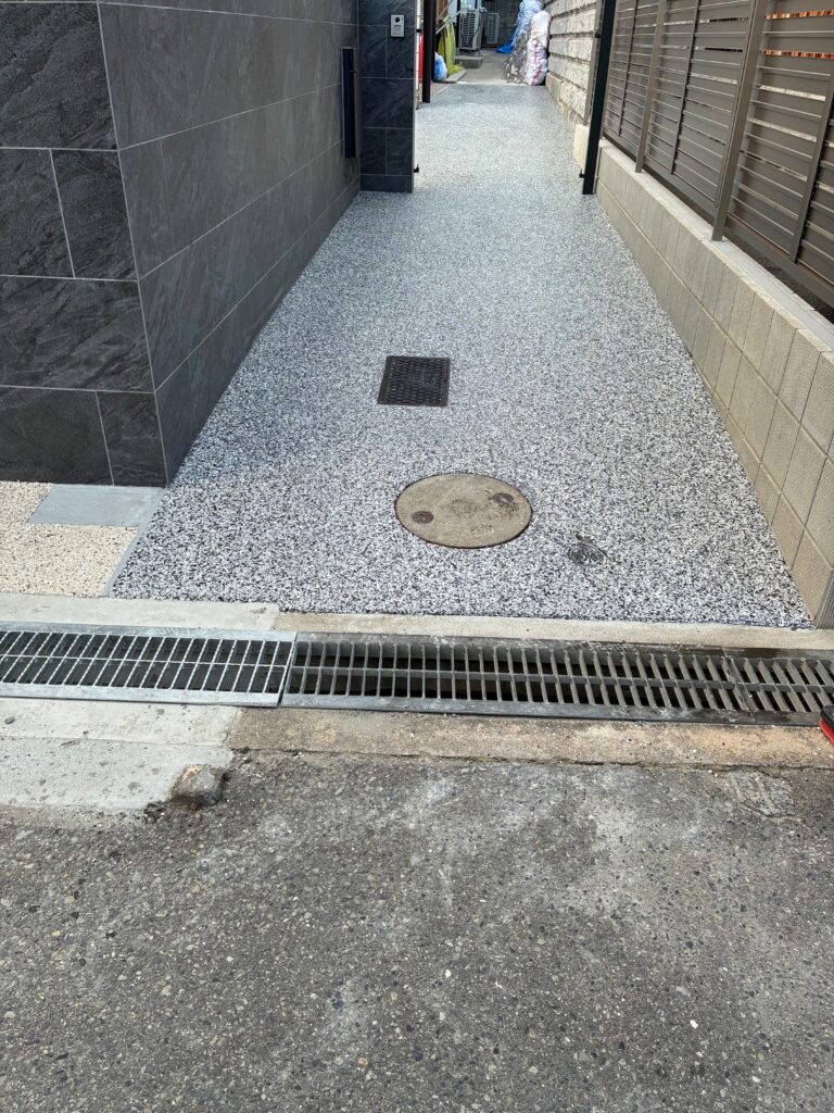 - 施工ポイント:光の反射で奥行きを演出。面全体をアートのように仕上げた。